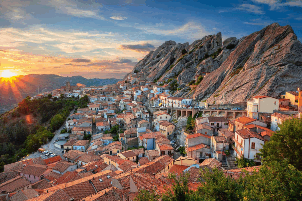 Nel cuore della Basilicata si trovano due borghi tra i più scenografici d’Italia: Castelmezzano e Pietrapertosa, aggrappati alle rocce delle Dolomiti Lucane. Le case sembrano scolpite nella montagna e i vicoli offrono panorami da cartolina.