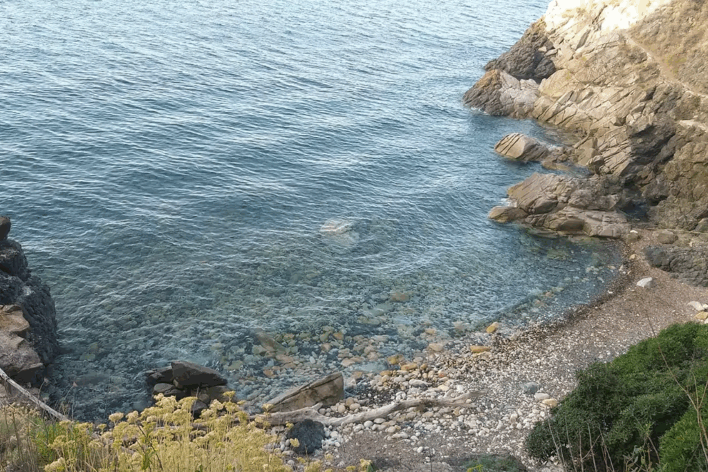 Tra Marciana Marina e Procchio si nasconde Punta Schioppo, una piccola caletta che più che una spiaggia è una stretta insenatura tra le rocce nere di origine vulcanica.