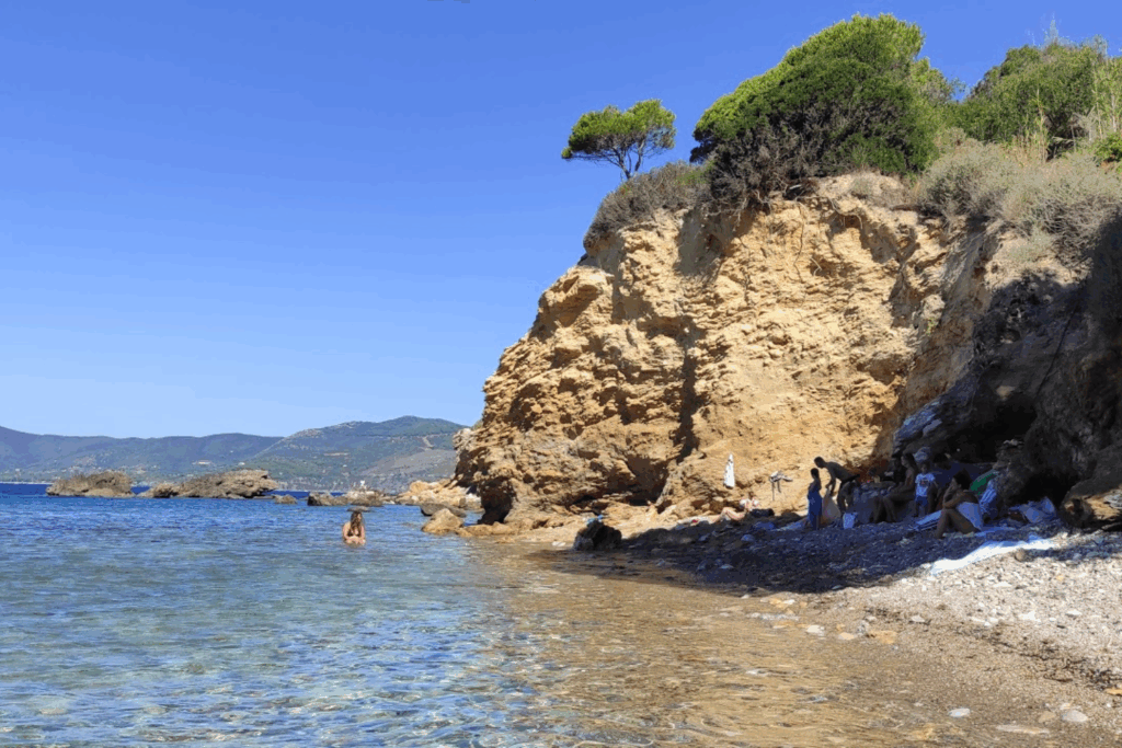 Il paesaggio è puro e autentico: sabbia e ghiaia colorata, pareti rocciose imponenti e un mare cristallino dai riflessi turchesi. Un luogo perfetto per lo snorkeling o semplicemente per ascoltare il suono del mare in silenzio.