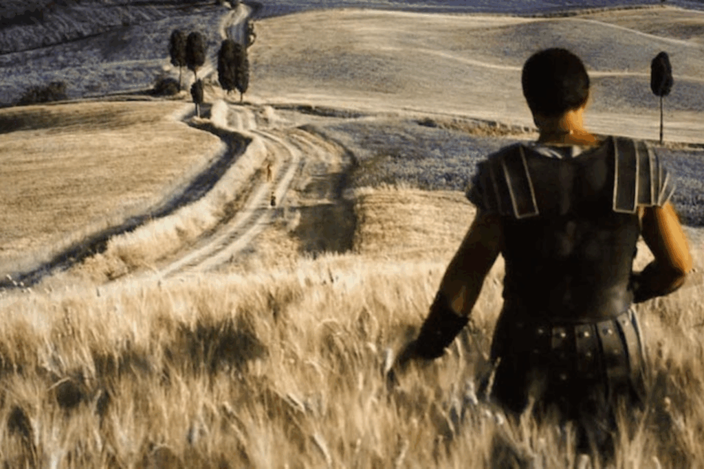 Tra le dolci colline della Val d’Orcia, vicino a Pienza, Ridley Scott ha scelto di girare la famosa scena onirica in cui Massimo Decimo Meridio cammina lentamente tra i campi di grano. Quel paesaggio, diventato oggi un simbolo riconosciuto della Toscana nel mondo, evoca una suggestione di pace e malinconia epica, perfettamente in sintonia con l’atmosfera del film.